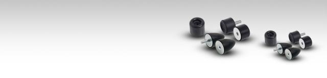 Vibrationsdæmpere buffertyper. Lagerføres hovedsagligt i naturgummi (NR), hårdhed 57 shore A +/-5, St37.